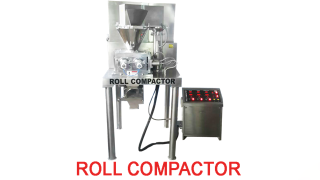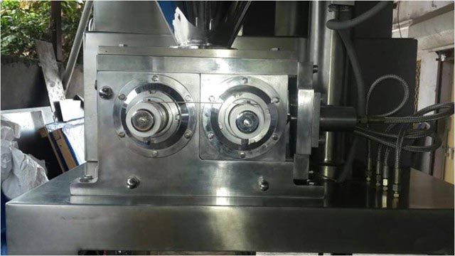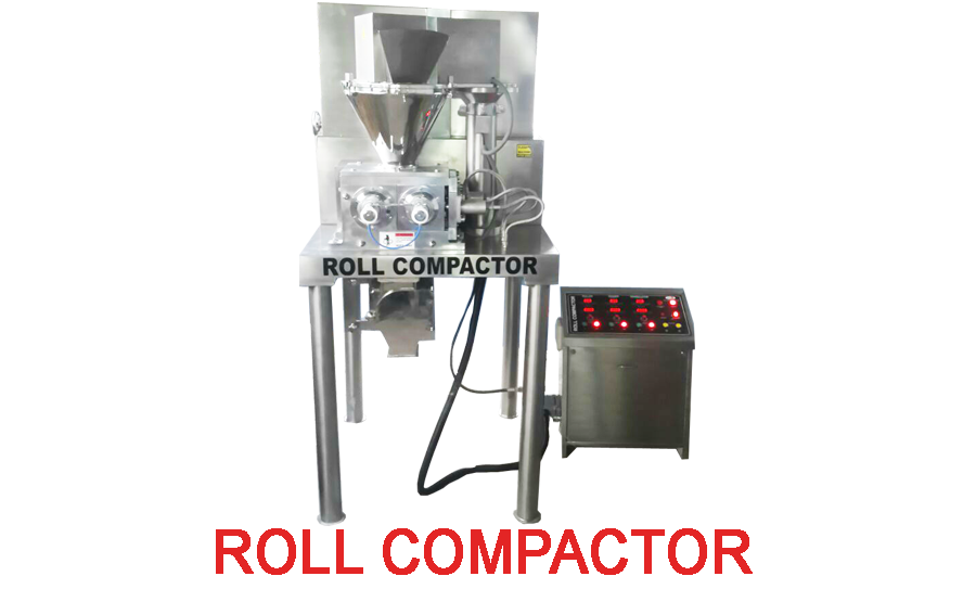 Roll Compactor Machine is used for dry granulation method. It forces the fine powders between two counter rotating rollers and presses the fine powders in a solid compact or sheets, so called chips or flakes. Finally these chips or flakes are then reduced in size to the desired granules/grain size further with the help of Oscillating Granulator Machine or Multi Mill Machine or Comminuting Mill or Sizing Machine. The sieve size should be selected very carefully in order to prevent the generation of fines. The selected sieve defines the final granules/grains size. Also further to achieve excellent granules/grains can be made dust free by Screening (Sifter) Machine. The separated fines also can be Re-compacted/ Recycle with Roll Compactor Machine.