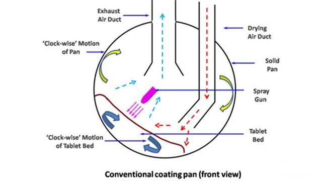 - Pan generates tumbling action of tablets/pellets.